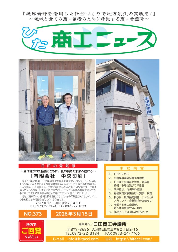 商工ニュース 2026年3月15日発行 373号 バックナンバー ・2026年1月15日発行 372号 ・2025年11月15日発行 371号 ・2025年9月15日発行 370号 ・2025年7月15日発行 369号 ・2025年5月15日発行 368号 ・2025年3月15日発行 367号 ・2025年1月1日発行 366号 ・2024年11月15日発行 365号 ・2024年9月15日発行 364号 ・2024年7月15日発行 363号 ・2024年5月15日発行 362号 お申し込みはこちら