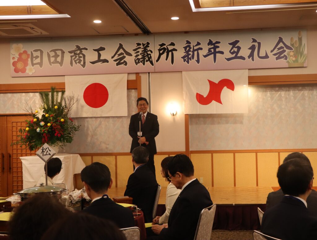 ホーム > お知らせ > 日田商工会議所 新年互礼会を開催しました 1月9日(金)に、新年恒例の「日田商工会議所新年互礼会」を開催いたしました。地元の商工業や行政の関係者など140名が出席して、新年のあいさつを交わし、今年一年の多幸と健康を祈念いたしました。 お知らせ