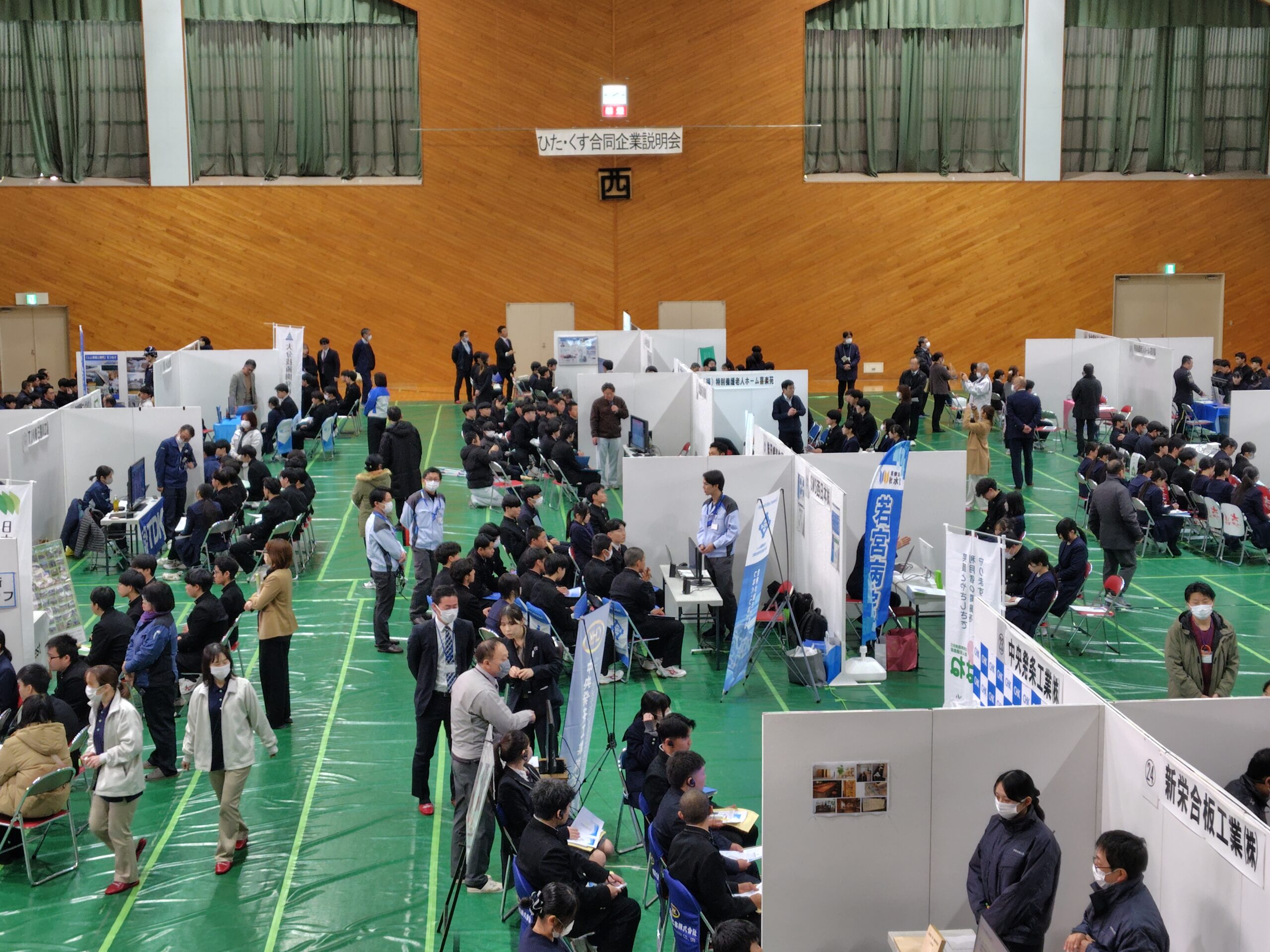 ホーム > お知らせ > ひた・くす合同企業説明会を開催しました 令和8年1月29日(木)にSWS西日本アリーナ日田にて、ひた・くす合同企業説明会を開催しました。ひた・くす合同企業説明会は日田玖珠地域の高校に通う生徒(高校2年生)を対象とし、地域の企業や行政機関等について知ってもらい、この先の就職希望職種や就職先等を選択するための情報発信の場としています。当日は、各高校の生徒・保護者約300名と企業等48社が参加され、生徒は企業の説明に熱心に耳を傾けていました。 お知らせ